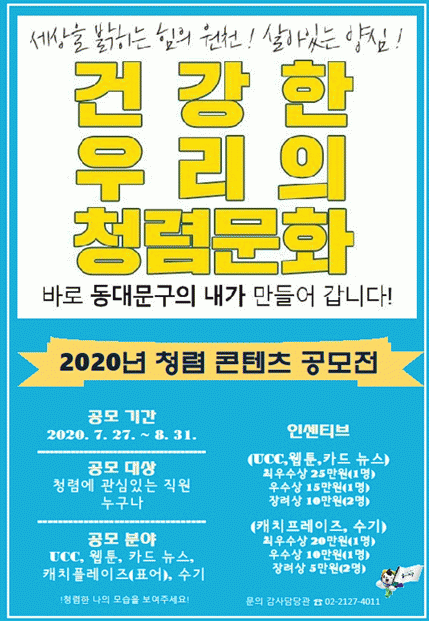 ±¸´Â ¡°°Ç°ÇÑ ¿ì¸®ÀÇ Ã»·Å¹®È, ¹Ù·Î µ¿´ë¹®±¸ÀÇ ³»°¡ ¸¸µé¾î °©´Ï´Ù¡±¸¦ ÁÖÁ¦·Î 8¿ù 31ÀϱîÁö 2020³â û·Å ÄÜÅÙÃ÷ °ø¸ðÀüÀ» °³ÃÖÇÑ´Ù°í ¹àÇû´Ù.