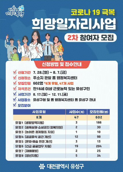 ¾Æ¿ï·¯ ±¸´Â Áö¿ªÀÇ Æ¯¼ºÀ» ¹Ý¿µÇÏ°í ±¸¹ÎµéÀÇ »ýȰ¾ÈÁ¤¿¡ ½ÇÁúÀûÀÎ µµ¿òÀ» ÁÙ ¼ö ÀÖ´Â ÀÏÀÚ¸® »ç¾÷µéÀ» Ãß°¡·Î ¹ß±¼ÇØ 8¿ù Áß¼ø 670¸í ±Ô¸ð·Î Ãß°¡¸ðÁýÀ» °èȹÇϰí ÀÖ´Ù.