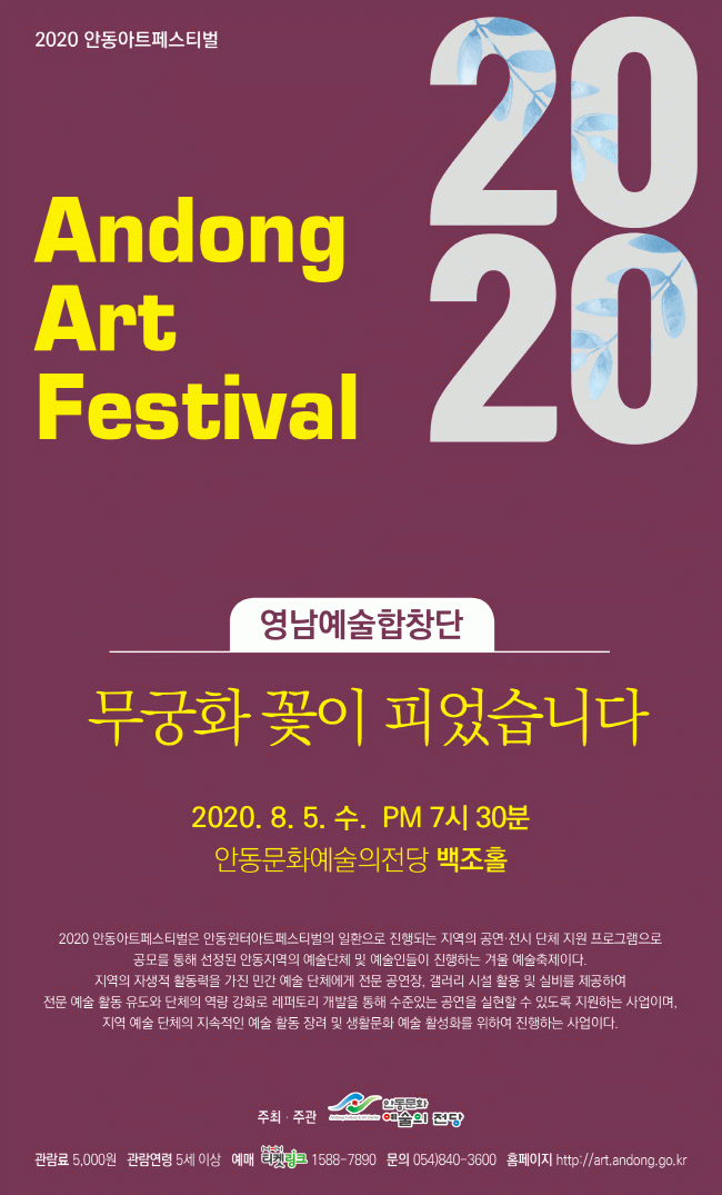 À̹ø °ø¿¬Àº ¾Èµ¿ÀÇ ²É, ³ª¶óÀÇ ²ÉÀ¸·Î Àß ¾Ë·ÁÁø ¾Èµ¿ ¹«±Ãȸ¦ ¹è°æÀ¸·Î 7080 ÁßÀå³âÃþÀÇ Ãß¾ï°ú Çâ¼ö¸¦ ´À³¥ ¼ö ÀÖ´Â ÇÕâÀ½¾ÇÀ¸·Î ¼¼´ë °£ ÈÇÕ°ú ³ª¶óÀÇ ¹ø¿µÀ» ¿°¿øÇÏ´Â ÇÁ·Î±×·¥À¸·Î ±¸¼ºÇÏ¿´´Ù.