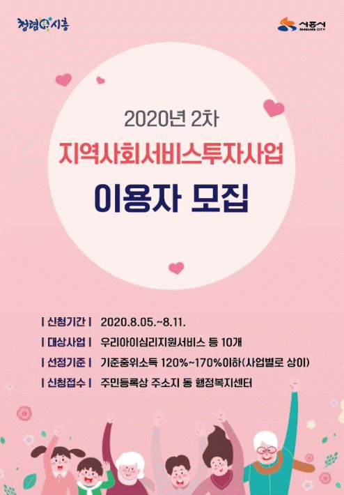 À̹ø¿¡ ¸ðÁýÇÏ´Â Áö¿ª»çȸ¼ºñ½ºÅõÀÚ»ç¾÷ÀÇ ¼ºñ½º´Â ÃÑ 10°³ »ç¾÷ÀÌ´Ù. ¹®Á¦Çൿ ¾Æµ¿ÀÇ ½É¸®Ä¡·á¸¦ À§ÇÑ ¿ì¸®¾ÆÀ̽ɸ®Áö¿ø¼ºñ½º¸¦ ºñ·ÔÇØ ¾Æµ¿ºñÀüÇü¼º¼ºñ½º, ¾Æµ¿Á¤¼¹ß´Þ¼ºñ½º, ½Ã°¢Àå¾ÖÀξȸ¶Áö¿ø¼ºñ½º, Àå¾ÖÀθÂÃãÇü¿îµ¿Ã³¹æ¼ºñ½º, Àå¾ÖÀκ¸Á¶±â±â·»Å»¼ºñ½º, Á¤½Å°Ç°ÅäÅ»Äɾñ½º, ¿ì¸®°¡Á·À¶ÇÕÇÁ·Î±×·¥, ÅëÇÕ°¡Á·»ó´ã¼ºñ½º, À¯¾Æµ¿½ÅüÁ¤¼ÅëÇÕ¼ºñ½ºÀÇ ÀÌ¿ëÀÚ¸¦ ¸ðÁýÇÏ°í ¿î¿µÇÒ °èȹÀÌ´Ù.