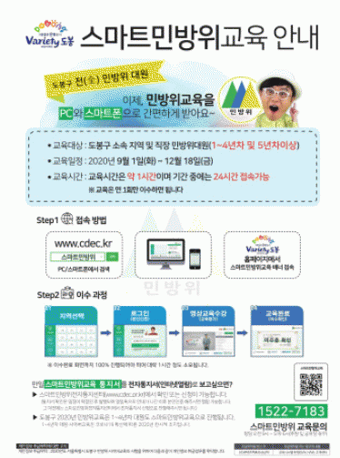 ±â°£ ³» ½º¸¶Æ®¹Î¹æÀ§±³À° ȨÆäÀÌÁö(www.cdec.kr)·Î Á¢¼ÓÇØ 1½Ã°£ ±³À° ¼ö° ÈÄ °´°ü½Ä Æò°¡¿¡¼ 70Á¡ ÀÌ»óÀÇ Á¡¼ö¸¦ ¹ÞÀ¸¸é µÈ´Ù.