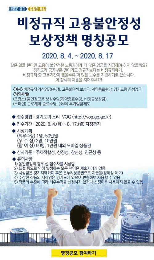 °æ±âµµ´Â ¿À´Â 8¿ù 17ÀϱîÁö ÀÌ °°Àº ³»¿ëÀÇ ¡®°æ±âµµ ºñÁ¤±ÔÁ÷ °í¿ëºÒ¾ÈÁ¤¼º º¸»óÁ¦µµ ¸íĪ °ø¸ðÀü¡¯À» °³ÃÖÇÑ´Ù°í ¹àÇû´Ù.
