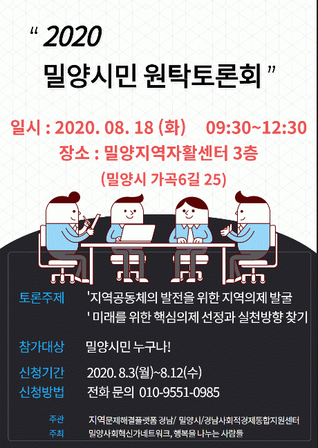 À۳⿡ ÀÌ¾î µÎ ¹øÂ°·Î ÁøÇàµÇ´Â À̹ø ¿øÅ¹Åä·Ðȸ´Â Áö¿ª¹®Á¦ÇذáÇ÷§Æû°æ³², ¹Ð¾ç½Ã, °æ³²»çȸÀû°æÁ¦ÅëÇÕÁö¿ø¼¾ÅÍ, ¹Ð¾ç»çȸÇõ½Å°¡³×Æ®¿öÅ©, ÇູÀ» ³ª´©´Â »ç¶÷µé ÁÖÃÖ.ÁÖ°üÀ¸·Î, ¡®Áö¿ª°øµ¿Ã¼ÀÇ ¹ßÀüÀ» À§ÇÑ Áö¿ªÀÇÁ¦ ¹ß±¼¡¯, ¡®¹Ì·¡¸¦ À§ÇÑ ÇÙ½ÉÀÇÁ¦ ¼±Á¤°ú ½Çõ¹æÇâ ã±â¡¯¶ó´Â ÁÖÁ¦·Î Åä·ÐÀÌ ÁøÇàµÈ´Ù.