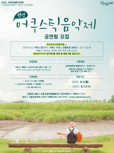 Âü°¡½Åû ¹× ÀÚ¼¼ÇÑ »çÇ×Àº ½ÃÈï°¹°ñÃàÁ¦ ȨÆäÀÌÁö (www.sgfestival.com)¿¡¼ È®ÀÎ ÇÒ ¼ö ÀÖÀ¸¸ç ±× ¹ÛÀÇ ¹®ÀÇ»çÇ×Àº ½ÃÈï°¹°ñÃàÁ¦ »ç¹«±¹ (031-310-6747)À¸·Î ÇÏ¸é µÈ´Ù.