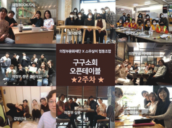 µÑ°, ¹®Èµµ½Ã °Å¹ö³Í½º´Â ã¾Æ°¡´Â ¶ó¿îµå Å×ÀÌºí ±¸±¸¼Òȸ, ¹®Èµµ½Ã ³×Æ®¿öÅ· »ç¾÷ ¸ðµë»ç¸® µîÀÌ´Ù. ±¸±¸¼Òȸ´Â ½Ã¹ÎÀÌ ÁÖüÀûÀ¸·Î Âü¿©ÇØ ÀǰßÀ» °³ÁøÇÏ´Â °³¹æÇü Å×À̺í, ¸ðµë»ç¸®´Â ºÎ´ëÂî°³ÀÇ Àç·á¸¦ ÀÏÄ´ ¸ðµë»ç¸®¿Í °øÁ¸À» ÀǹÌÇÏ´Â ¸ðµë»ìÀÌÀÇ ´Ü¾î¸¦ Á¶ÇÕÇÑ Áß°£ Áö¿øÁ¶Á÷ ½Ç¹«ÀÚ ³×Æ®¿öÅ©¸¦ ¸»ÇÑ´Ù.