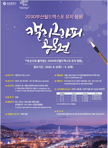 °ø¸ðÀüÀÇ ÁöÁ¤ ¹®±¸´Â ¡ã³×²Þ ³»²Þ, ºÎ»ê¿ùµå¿¢½ºÆ÷ À¯Ä¡ ! ¡ã´ëÇѹα¹ ¿ùµå¿¢½ºÆ÷ À¯Ä¡, ±â´Ù¸²ÀÌ ÇູÇÏ´Ù. ¡ãºÎ»ê °¡¸é ³Î º¼ ¼ö ÀÖÀ»±î? 2030 WORLD¡¡EXPO ¡ã2030ºÎ»ê¿ùµå¿¢½ºÆ÷ À¯Ä¡¸¦ ÀÀ¿øÇÕ´Ï´Ù. ¡ã2030¿ùµå¿¢½ºÆ÷ °³ÃÖÁö´Â ³Ê¾ß, ºÎ»ê ! µî 5°³À̸ç, ÁöÁ¤ ¹®±¸ Áß ÇÑ °³¸¦ ¼±ÅÃÇϰųª º»Àθ¸ÀÇ Ã¢ÀÛ ¹®±¸·Îµµ ÀÀ¸ðÇÒ ¼ö ÀÖ´Ù.