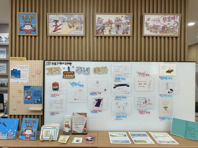 µµ¼°ü °÷°÷¿¡ Àü½Ãȸµµ ¿î¿µµÈ´Ù. ±×¸²Ã¥ ¡®¹°°³ ÇÒ¸Á¡¯°ú ¡®½´ÆÛ Åä³¢¡¯ ¾ÆÆ®ÇÁ¸°Æ® ¿øÈ, ¿©¸§ °ü·Ã Ãßõµµ¼, û¼Ò³â Ã¥ Ãßõ »çÀÌÆ® ¡®¤º¤º¤º¡¯ÀÇ ºÏ Å¥·¹À̼Ç, ÀÛ°¡¿Í ÁֹεéÀÇ 1ÁÖ³â ÃàÇϸ޽ÃÁö µîÀÌ Àü½ÃµÈ´Ù.