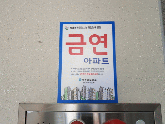 °øµ¿ÁÖÅà ±Ý¿¬±¸¿ªÀ¸·Î ÁöÁ¤µÇ¸é ±º ȨÆäÀÌÁö ¹× ¾ÆÆÄÆ®¿¡ ÁöÁ¤ ³»¿ªÀÌ °ø°íµÇ¸ç, ½Ã¼³ ÃâÀÔ±¸ µî¿¡ ±Ý¿¬±¸¿ª Ç¥ÁöÆÇÀ» ¼³Ä¡Çϸç, Èí¿¬ÀÚ¸¦ À§ÇØ Ã£¾Æ°¡´Â ±Ý¿¬Å¬¸®´Ð ¿î¿µ°ú ÇÔ²² ±Ý¿¬ È«º¸¹°À» Á¦°øÇÑ´Ù.