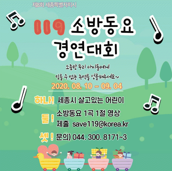 Âü°¡ Á¢¼ö´Â ¼Ò¹æµ¿¿ä °¡Ã¢ ¿µ»óÀ» À̸ÞÀÏ(save119@korea.kr)·Î Á¦ÃâÇÏ¸é µÇ¸ç, ¼Ò¹æµ¿¿ä´Â Çѱ¹119¼Ò³â´Ü ȨÆäÀÌÁö(www.young119.or.kr)¿¡¼ µé¾îº¼ ¼ö ÀÖ´Ù.