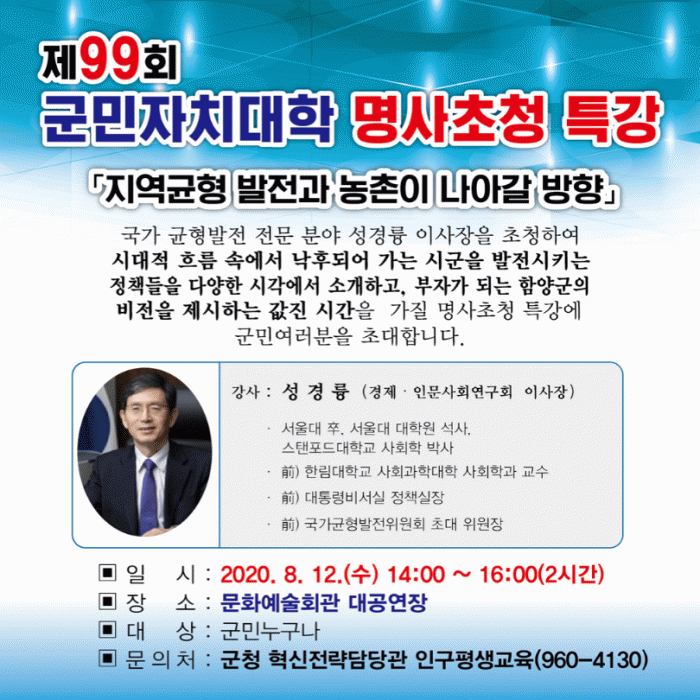 À̹ø °¿¬¿¡´Â ±¹°¡±ÕÇü¹ßÀü Àü¹®°¡ÀÎ Àü ±¹°¡±ÕÇü¹ßÀüÀ§¿øÈ¸ À§¿øÀåÀ» ¿ªÀÓÇϰí ÇöÀç °æÁ¦ Àι®»çȸ¿¬±¸È¸ ¼º°æ¸¢ ÀÌ»çÀåÀÌ ¡®Áö¿ª±ÕÇü ¹ßÀü°ú ³óÃÌÀÌ ³ª¾Æ°¥ ¹æÇ⡯ ÁÖÁ¦·Î °¿¬ÇÑ´Ù.
