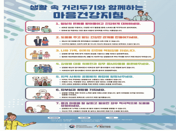½Ã °ü°èÀÚ´Â Äڷγª19 Àå±âÈ·Î º¯ÈµÈ ÀÏ»ó»ýȰ¿¡¼ ¿À´Â ½ºÆ®·¹½º °ü¸®¸¦ À§ÇØ 7°¡Áö ¸Þ½ÃÁö¸¦ ´ãÀº ?»ýȰ ¼Ó °Å¸®µÎ±â¿Í ÇÔ²²ÇÏ´Â ¸¶À½°Ç°Áöħ?À» È«º¸ÇÏ¸ç µ¿ÂüÇÒ °ÍÀ» ´çºÎÇß´Ù.