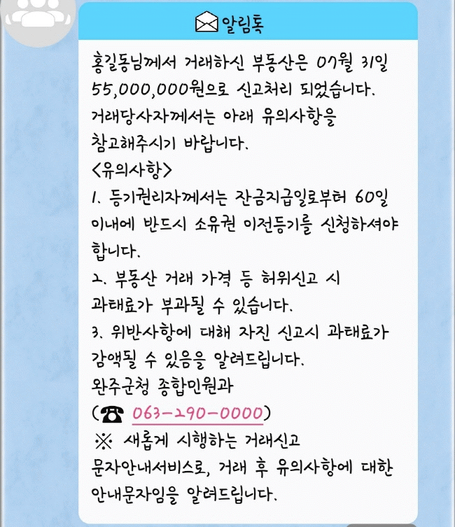 7ÀÏ ¿ÏÁÖ±ºÀº Áö³ 6¿ù 4ÀϺÎÅÍ ºÎµ¿»ê °Å·¡½Å°í ´ç»çÀÚÀÎ ¸ÅµµÀΰú ¸Å¼öÀο¡°Ô ºÎµ¿»ê °¡°Ý, °Å·¡ÀÏÀÚ µî °Å·¡½Å°í ³»¿ë°ú µî±â½Åû ¾È³» µîÀÇ À¯ÀÇ»çÇ×À» ¹®ÀÚ·Î ÀÚµ¿ Àü¼ÛÇÏ´Â ¡®ºÎµ¿»ê °Å·¡½Å°í ¹®Àھ˸²¡¯¼ºñ½º¸¦ ½ÃÇàÇϰí ÀÖ´Ù°í ¹àÇû´Ù.