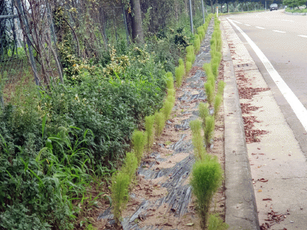 À̹ø¿¡ ȯ¿µ ²É±æ¿¡ ½ÉÀº ÄÚŰ¾Æ´Â ¿©¸§¿¡´Â ³ì»öÀ» À¯ÁöÇϸç, °¡À»¿¡´Â Àû»ö ¹× °¥»öÀ¸·Î º¯¸ðÇÏ¿© È·ÁÇÑ ÀÚŸ¦ »Ë³½´Ù. ±ºÀº µµ·Îº¯ ³°£À̳ª Çù¼ÒÇÑ ±¸°£¿¡ ´ëÇÏ¿©´Â 1ÁÙ·Î ½ÄÀçÇÏ°í °ø°£ÀÌ ³ÐÀº ±¸°£¿¡ ´ëÇÏ¿©´Â 2~3ÁÙ ¶Ç´Â °ø°£ÀÌ ¸¹Àº °÷¿¡´Â ±º½ÄÀ¸·Î ½É¾î ±ú²ýÇÏ°í ¾Æ¸§´Ù¿î ȯ¿µ ²É±æÀ» Á¶¼ºÇÒ °èȹÀÌ´Ù.