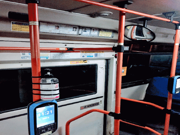 ¶ÇÇÑ, Áö³´Þ¿¡´Â Àç³°ü¸®±â±ÝÀ» »ç¿ëÇÏ¿© 760¿© ´ëÀÇ Àü ½Ã³»¹ö½º, ¸¶À»¹ö½º ³» ž½Â°´ÀÇ ¼Õ±æÀÌ ¸¹ÀÌ ´ê´Â ¼ÕÀâÀÌ ±âµÕ, ÇÏÂ÷º§, Ä«µå ´Ü¸»±â¿¡ °£Á¢ Á¢ÃË¿¡ ÀÇÇÑ Áý´Ü ¹ÙÀÌ·¯½º °¨¿°À» ¿¹¹æÇÏ´Â È¿°ú°¡ ÀÖ´Â °ÍÀ¸·Î ¾Ë·ÁÁø Ç×±Õ µ¿Çʸ§À» ºÎÂøÇß´Ù. ÀÛ¾÷Àº ¼ÕÀâÀÌ, ÇÏÂ÷º§ Á¾·ùº° ±Ô°Ý¿¡ ¸Â°Ô Çʸ§À» Àç´ÜÇÑ ÈÄ ¹ö½º ¿îÇàÀÌ Á¾·áµÇ´Â ¾ß°£½Ã°£´ë¿¡ Â÷·®ÀÌ ¸¹Àº °ø¿ëÂ÷°íÁöºÎÅÍ °³º° Â÷°íÁö ¼øÀ¸·Î ºÎÂøÇÏ´Â ¹æ½ÄÀ¸·Î ÁøÇàµÆÀ¸¸ç, ±¼°îÀ¸·Î ÀÎÇØ ºÎÂøÀÌ ¾î·Á¿î ºÎºÐÀº ¾ËÄÚ¿Ã ¼Òµ¶À¸·Î º¸¿ÏÇÑ´Ù.