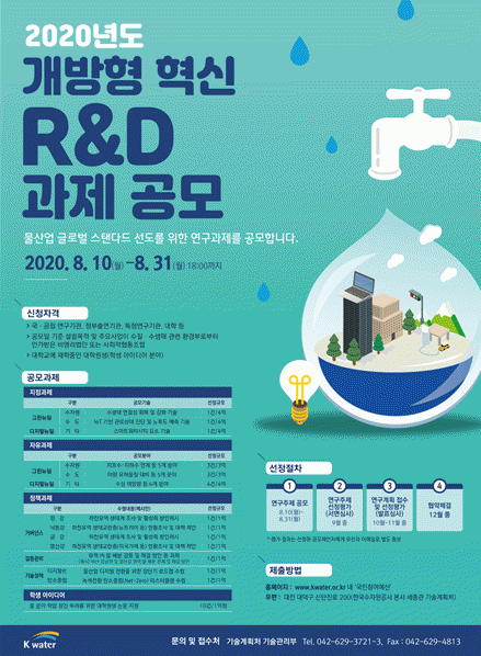 Çѱ¹¼öÀÚ¿ø°ø»ç´Â À̹ø °ø¸ð¸¦ ÅëÇØ ±¹³» °¢°èÀÇ ¹° ºÐ¾ß ´Üüµé°ú Æø³Ð°Ô Çù·ÂÇÏ¿© ȯ°æ, ½Ã¹Î»çȸ, Áö¿ªÀû Ư¼º µîÀÌ º¹ÇÕÀûÀ¸·Î ¿¬°áµÇ¾îÀÖ´Â À¯¿ªº° ¹° ¹®Á¦¸¦ ÇØ°áÇÏ´Â µ¥ µµ¿òÀÌ µÉ °ÍÀ¸·Î ±â´ëÇϰí ÀÖ´Ù.