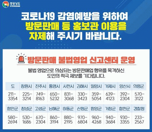 ¾Æ¿ï·¯ ¹æ¹®ÆÇ¸Å ºÒ¹ý¿µ¾÷À¸·Î ÀǽɵǴ ÇàÀ§ ¶Ç´Â ¼Ò±Ô¸ð °¡Á¤¹æ¹® ¿µ¾÷ÇàÀ§¸¦ ¸ñ°ÝÇÑ °æ¿ì °üÇÒ À¾¡¤¸éÇàÁ¤º¹Áö¼¾ÅÍ ¶Ç´Â ³²Çرº Áö¿ªÈ°¼º°ú(¢Ï055-860-3194)·Î Áï½Ã ½Å°íÇØ¾ß ÇÑ´Ù.
