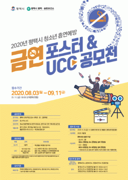 ¡¸±Ý¿¬ Æ÷½ºÅÍ & UCC °ø¸ðÀü¡¹Àº 8¿ù3ÀϺÎÅÍ 9¿ù11ÀϱîÁö Á¢¼ö ¹Þ°í ÀÖÀ¸¸ç, °ø¸ð ÁÖÁ¦´Â ¡®Ã»¼Ò³â Èí¿¬¿¹¹æ ¹× ±Ý¿¬ÀÇ Á߿伺, ±Ý¿¬À¸·Î ÀÎÇÑ °¡Á·½Çõ µî¡¯ÀÌ´Ù. °ø¸ðºÎ¹®Àº Æ÷½ºÅÍ(4ÀýÁö) ¶Ç´Â UCC(1ºÐ 30ÃÊ À̳»/AVI, WMV, MPG ÆÄÀÏ Áß ÅÃ1)°¡ ÀÖÀ¸¸ç, ±× Áß UCC´Â °³ÀÎ ¶Ç´Â 5¸í À̳» ´Üü ÀÀ¸ð°¡ °¡´ÉÇÏ´Ù.