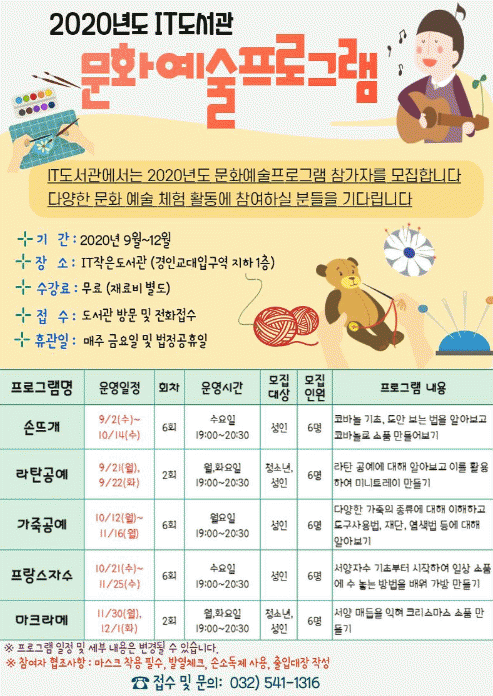 ÇÁ·Î±×·¥ Âü¿©¿¡ µû¸¥ ºñ¿ëÀº ¸ðµÎ ¹«·á(Àç·áºñ º°µµ)À̸ç, °Á ½Åû°ú ¹®ÀÇ´Â ITÀÛÀºµµ¼°ü(¢Ï032-541-1316)À¸·Î ÇÏ¸é µÈ´Ù.