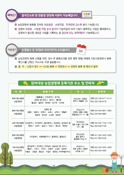 ÀӾߴë»ó ³ó¾÷°æ¿µÃ¼ µî·Ï¿¡ µû¸¥ ÇýÅÃÀ¸·Î´Â ¡ã¸é¼¼À¯ ±¸ÀÔ ¡ã³óÀÚÀç ±¸ÀÔ ½Ã ¿µ¼¼À² Àû¿ë ¡ã°¢Á¾ º¸Á¶¡¤À¶ÀÚ±Ý Áö¿ø»ç¾÷ Áö¿ø ½Ã ÀÚ°ÝÁõ¸í ´ëü(°£¼ÒÈ) µîÀÌ ÀÖ´Ù.