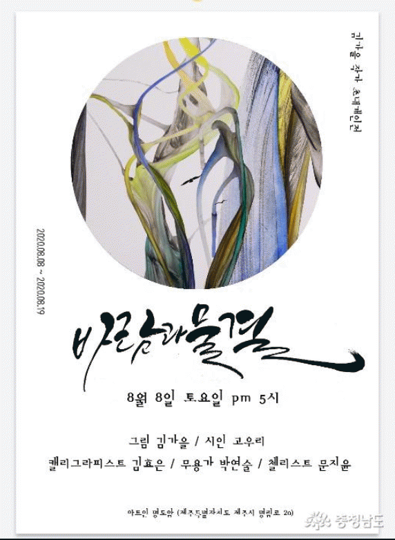 Ãæ³²½ÅÁø¿¹¼ú°¡ 5±â °í¿ì¸® ½ÃÀΰú Á¦ÁÖÀÇ ±èÈ¿Àº ͏®±×¶óÇǽºÆ®°¡ ÇÔ²² ÇÏ´Â À̹ø Àü½Ãȸ´Â ¹Ù¶÷°ú ¹°°áÀ» ÁÖÁ¦·Î 3ÀÎÀÇ ÀÛ°¡°¡ °¢°¢ ±×¸²°ú ½Ã¿Í ±Û¾¾·Î Çϳª°¡ µÇ¾î È帣´Â ½Ã°£°ú °°Àº ¹Ù¶÷°ú ¹°°áÀ» Ç¥ÇöÇÑ´Ù.