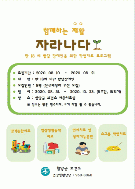 À̹ø ÀÛ¾÷Ä¡·á ÇÁ·Î±×·¥Àº ÀÛ¾÷Ä¡·á¸¦ ÅëÇØ ¹ß´ÞÀå¾ÖÀÎÀÇ °¨°¢Ã³¸®´É·Â Çâ»ó, ÀÏ»ó»ýȰ ÀÚ¸³ ´É·Â ¹× »îÀÇ Áú Çâ»óÀ» ÁßÁ¡À¸·Î ÀÏ´ëÀÏ ¸ÂÃãÇü Ä¡·á¿¡¼ Á¡ÁøÀû ±×·ìÄ¡·á¸¦ ½Ç½ÃÇÏ¿© ¶Ç·¡°ü°è Çü¼º ¹× »çȸ¼º ±â¼ú ½ÀµæÀ» ¸ñÇ¥·Î ÁøÇàÇÑ´Ù.