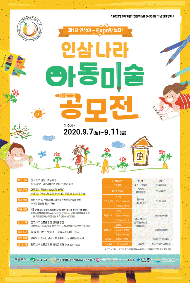 À̹ø °ø¸ðÀüÀº ¾ÆÀ̵éÀÇ »ó»ó·Â°ú âÀÇ·ÂÀ» °³¹ßÇÒ ¼ö ÀÖµµ·Ï ¡°ÀÎ»ï¾Æ~Expo¶û ³îÀÚ!¡±ÀÇ ´ëÁÖÁ¦¿Í ¡®Àλﳪ¶ó ÃàÁ¦, Àλﳪ¶ó ¿îµ¿È¸, ÀλïÀÇ È¿´É¡¯À̶ó´Â ¼ÒÁÖÁ¦·Î ÇÏ´Â ¼ø¼ö âÀÛ ÀÛǰÀ» ´ë»óÀ¸·Î ÇÑ´Ù.