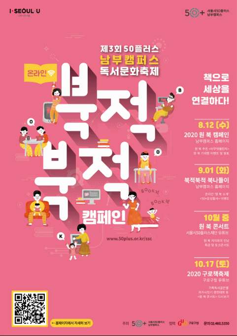 8¿ùºÎÅÍ 10¿ù±îÁö ¡®¿ø ºÏ Ä·ÆäÀΡ¯(8¿ù), ¡®ºÏ ³ªµéÀÌ¡¯(9¿ù), ¡®¿ø ºÏ ÄܼƮ¡¯(10¿ù)¿Í ¡®±¸·Î Ã¥ ÃàÁ¦¡¯(10¿ù)·Î ³ª´µ¾î 50+¼¼´ë°¡ ´Ù¾çÇÏ°Ô µ¶¼¸¦ Áñ±æ ¼ö ÀÖµµ·Ï ´Ùä·Î¿î ÇÁ·Î±×·¥À» ´ã¾Æ ÁøÇàµÈ´Ù.