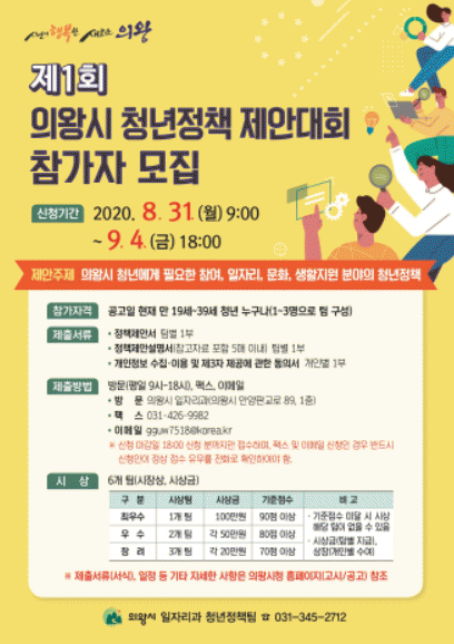 Á¢¼ö±â°£Àº ¿À´Â 8¿ù 31ÀÏ 9½ÃºÎÅÍ 9¿ù 4ÀÏ 18½Ã±îÁöÀ̸ç, ¸¸ 19¼¼~39¼¼ û³âÀÌ¸é ´©±¸³ª Á¢¼ö °¡´ÉÇÏ´Ù. Âü¿©¸¦ ¿øÇÏ´Â °æ¿ì ÀǿսÃû ȨÆäÀÌÁö °í½Ã°ø°í¶õÀÇ °ø°í¹®¿¡ ÷ºÎµÈ ½Åû¼·ù¸¦ ÀÛ¼ºÇÏ¿© ¹æ¹®, ÆÑ½º ¶Ç´Â À̸ÞÀÏ·Î Á¦ÃâÇÏ¸é µÈ´Ù.
