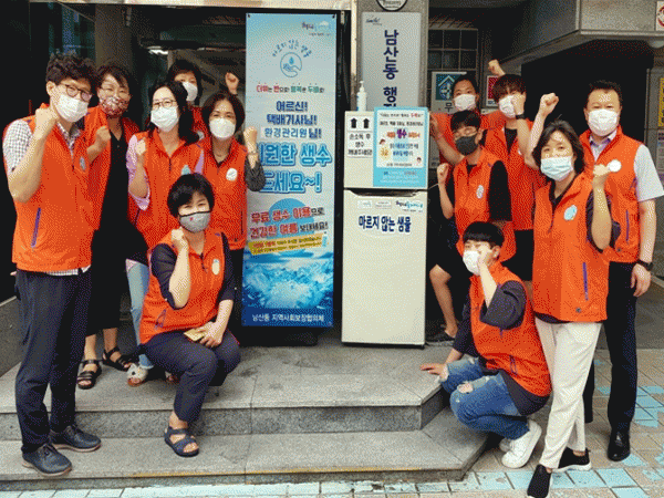 ¡®¸¶¸£Áö ¾Ê´Â »ù¹°¡¯»ç¾÷Àº ³²»êµ¿ ÇàÁ¤º¹Áö¼¾ÅÍ ¾Õ¿¡ ³ÃÀå°í¸¦ ºñÄ¡ÇÏ¿© ¹«´õÀ§¿¡ ÁöÄ£ Åùè±â»ç, ȯ°æ°ü¸®¿ø, ³ë¾àÀÚ µîÀÌ ÀÚÀ¯·Ó°Ô »ý¼ö(500ml)¸¦ ²¨³» ¸¶½Ç ¼ö ÀÖµµ·Ï Áö¿øÇÏ´Â »ç¾÷ÀÌ´Ù.