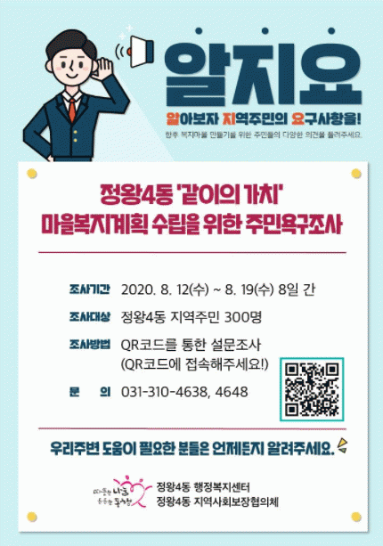 Á¤¿Õ4µ¿ ÁֹεéÀÇ ¿ì¼± ¿å±¸¸¦ ÃÖ´ëÇÑ ÆÄ¾ÇÇϰíÀÚ 300¸í ÀÌ»óÀ» ¸ñÇ¥·Î Á¶»ç ¿¹Á¤ÀÌ´Ù. Á¤¿Õ4µ¿ ÁÖ¹ÎÃÑȸ »çÀüÅõÇ¥ ±â°£(8¿ù 13ÀÏ~8¿ù 21ÀÏ) Áß¿¡µµ ÇöÀå ÅõÇ¥ÇÔÀ» ¼³Ä¡ÇØ ÁֹεéÀÇ ´Ù¾çÇÑ ÀǰßÀ» ûÃëÇÒ ¿¹Á¤ÀÌ´Ù.