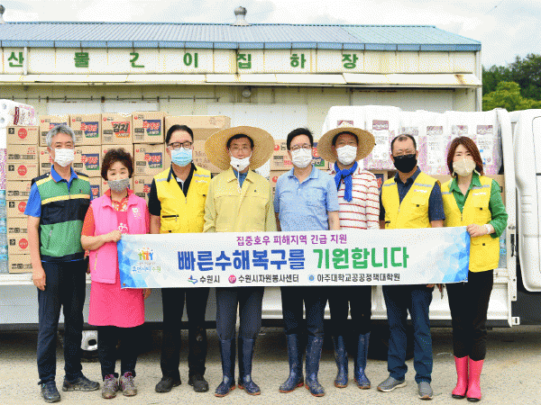 ¼ö¿ø½Ã´Â ¡®¼ö¿ø½Ã Àç³ÀçÇØ ºÀ»ç´Ü¡¯À» ¿î¿µÇÏ¸ç ¼öÇØ Áö¿ª º¹±¸ ÀÛ¾÷¿¡ ÈûÀ» º¸Å°í ÀÖ´Ù. 9ÀÏ¿¡´Â ¾È¼º½Ã ÀÏÁ׸é ÀÏ¿øÀ» ã¾Æ°¡ ħ¼öµÈ ÁýÀÇ °¡Àçµµ±¸¸¦ Á¤¸®Çϰí, °÷°÷¿¡ ½×ÀÎ Åä»ç¸¦ Ä¡¿ì´Â ºÀ»çȰµ¿À» Çß´Ù.