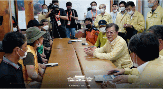 ¹®ÀçÀÎ ´ëÅë·ÉÀº ½ÃÀå °÷°÷À» µ¹¾Æº¸¸ç ¾²·¹±â¸¦ Ä¡¿ì°í, Á¥Àº ½Ä±âµéÀ» ¾Ä°í ÀÖ´Â ºÀ»çÀڵ鿡°Ô "ÇÔ²²ÇØ Áּż °¨»çÇÏ´Ù"°í °Ý·ÁÇÑ µÚ, Áö³ Æø¿ì·Î À¯½ÇµÈ ±¸·Ê±º ¼½Ã1±³·Î À̵¿ÇØ ÇÇÇØ º¹±¸ »óȲÀ» Á¡°ËÇß´Ù.
