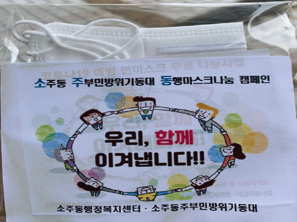 À̵éÀº ¿õ»ó³óÇù ¼ÒÁÖÁöÁ¡, ³²¾ç»ó°¡, ¼ÒÁÖȸ¾ß·Î µîÀ» µ¹¸ç Äڷγª19·Î ÁöÄ£ Áö¿ª Áֹε鿡°Ô Èñ¸ÁÀÇ ¸Þ½ÃÁö¸¦ ´ãÀº ¸¶½ºÅ© 500¿© ¸Å¸¦ ³ª´²ÁÖ¸ç °Ý·ÁÇßÀ¸¸ç, ¸¶½ºÅ©¸¦ Âø¿ëÇÏÁö ¾ÊÀº Áֹε鿡°Ô Âø¿ëÀÇ Á߿伺µµ °°ÀÌ Àü´ÞÇÏ¿´´Ù.