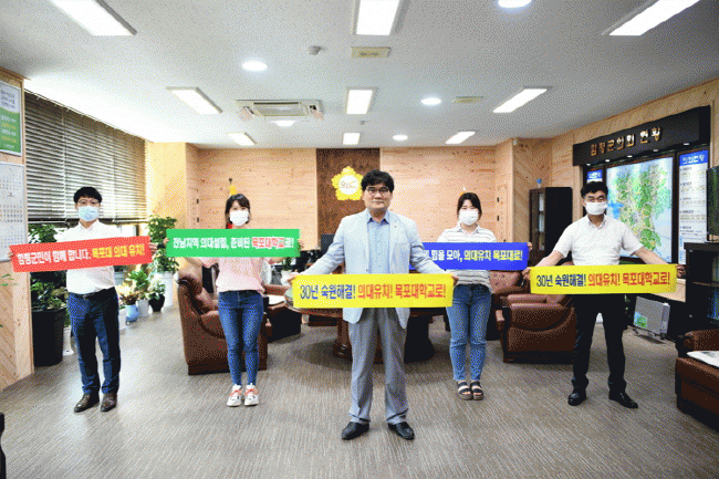 [´ëÇÑ¿©¼ºÀϺ¸]ÃÖ±Ù Á¤ºÎ¿Í ¿©´çÀÌ ¹àÈù ÀÇ´ë½Å¼³ ÃßÁø°ú °ü·ÃÇØ Àü³² ¼³²±ÇÀ» Áß½ÉÀ¸·Î ¸ñÆ÷´ë Àǰú´ëÇÐ À¯Ä¡¸¦ ±â¿øÇÏ´Â ¸±·¹ÀÌ Ä·ÆäÀÎÀÌ À̾îÁö°í ÀÖ´Â °¡¿îµ¥, ±èÇü¸ð ÇÔÆò±ºÀÇȸÀÇÀåÀÌ 13ÀÏ ±ºÀÇȸ ÀÇÀå½Ç¿¡¼ ¸ñÆ÷´ë ÀÇ´ë À¯Ä¡¸¦ ÁöÁöÇÏ´Â ÇÇÄÏÀ» µé°í ¸±·¹ÀÌ Ä·ÆäÀο¡ µ¿ÂüÇß´Ù.
