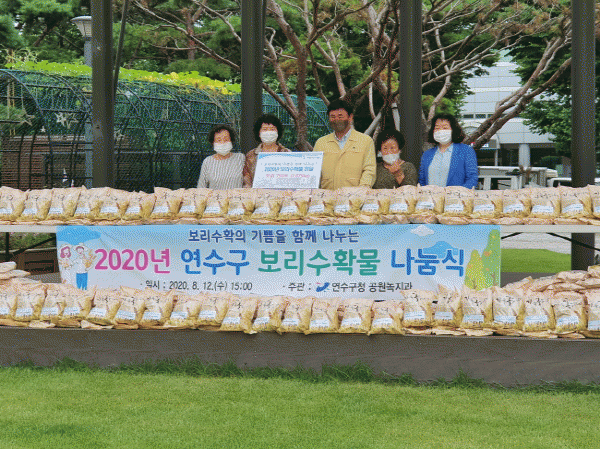 [´ëÇÑ¿©¼ºÀϺ¸]¿¬¼ö±¸(±¸Ã»Àå °í³²¼®)´Â 12ÀÏ ±¸Ã» ÇѸ¶À½±¤Àå¿¡¼ Áö¿ª °øÇÑÁö¿¡¼ ¼öÈ®µÈ º¸¸®¸¦ Áö¿ª ¾î¸£½Åµé°ú ÇÔ²² ³ª´©±â À§ÇØ ¿¬¼ö±¸ ³ëÀκ¹Áö°ü¿¡ º¸¸® 1õ875kg(750Æ÷/2.5kg)Àü´Þ½ÄÀ» ¿¾ú´Ù.