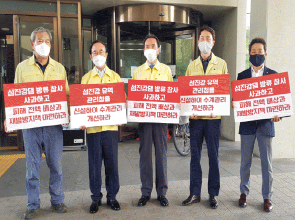 À̳¯ ¿ÀÀü¿¡ ȯ°æºÎ¸¦ ãÀº 5°³ ½Ã.±º ÀÚÄ¡´ÜüÀåÀº ȯ°æºÎ ±èµ¿Áø ¼öÀÚ¿øÁ¤Ã¥±¹ÀåÀ» ¸¸³ª ¼¶Áø° ´ï ¹æ·ù·® Á¶Àý¿¡ ½ÇÆÐÇÏ¸é¼ ¼¶Áø° ¼ö°èÁö¿ªµéÀÌ ¸¹Àº ÇÇÇØ¸¦ ÀÔ¾ú´Ù°í °Á¶Çß´Ù. À̹ø ÇÇÇØ´Â ±â·ÏÀûÀÎ °¼ö·®º¸´Ùµµ Áö³ 8ÀÏ ºÒ°ú 6½Ã°£ ¸¸¿¡ ¹æ·ù·®À» 591Åæ¿¡¼ 1,752ÅæÀ¸·Î ´Ã¸° °ÍÀÌ Ä§¼öÇÇÇØ¸¦ Ű¿ü´Ù´Â °ÍÀÌ À̳¯ ¸ðÀÎ ÀÚÄ¡´ÜüÀåµéÀÇ °øÅëµÈ ÀǰßÀÌ´Ù.