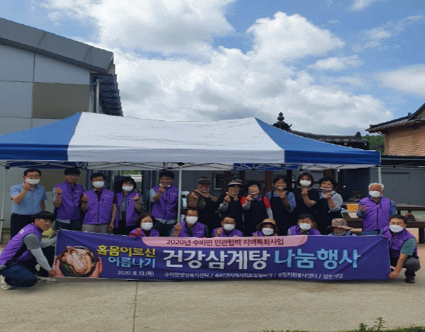À̹ø Çà»ç´Â ¼öºñ¸éÁö¿ª»çȸº¸ÀåÇùÀÇü°¡ ÁÖ°üÇÏ¿© ¼öºñ¸éµ¶°Å³ëÀÎ »ýȰ°ü¸®»ç(5¸í)¿Í ÇÔ²² °¢Á¾ ¾àÀç¿Í Âý½ÒÀ» ³Ö¾î °Ç° »ï°èÅÁÀ» ¸¸µé¾î Áö¿ª ¼Ò¿Ü°èÃþ 100°¡±¸¿¡ Àü´ÞÇϸç ÀÌ¿ô »ç¶û ³ª´®À» ¸ö¼Ò ½ÇõÇÏ¿´´Ù. ¶ÇÇÑ ¿µ¾ç±ºÁ¾ÇÕÀÚ¿øºÀ»ç¼¾ÅÍÀÇ ÀÚ¿øºÀ»ç¿Í °ü³» »ï¼Õ½Ä´çÀÇ ¹Ø¹ÝÂù ±âºÎ·Î ¹Î°üÀÌ ÇÔ²² Áö¿ª»ç¶û¿¡ Á¤¼ºÀ» ¸ð¾Ò´Ù.