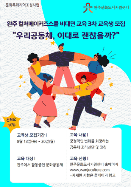 ¿ÏÁÖ ¹®È°øµ¿Ã¼¸¦ ´ë»óÀ¸·Î ÇÏ´Â À̹ø ±³À°Àº ¼±Âø¼ø 10ÆÀÀ» ¸ðÁýÇÏ¸ç ±àÁ¤ÀûÀÎ º¯È¸¦ Èñ¸ÁÇÏ´Â ¹®È°øµ¿Ã¼¶ó¸é ´©±¸³ª Áö¿ø °¡´ÉÇÏ´Ù.