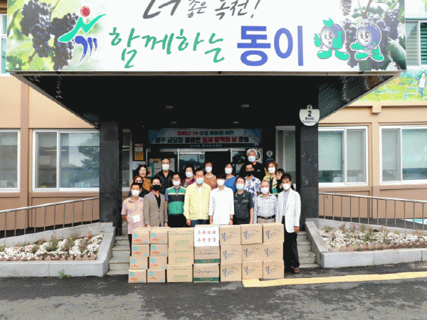 ÈÄ¿ø¹°Ç° ±âʾ÷üµéÀÌ 13ÀÏ µ¿À̸éÇàÁ¤º¹Áö¼¾ÅÍ¿¡¼ ÇùÀÇü¿¡ ¹°Ç°À» ±âÁõÇÏ¸ç ¼öÇØÇÇÇØ¿¡ ´ëÇÑ ÈÄ¿øÀÇ ¶æÀ» ÀüÇß´Ù.