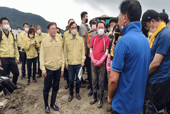 ÇÑÆí, ¹®ÀçÀÎ ´ëÅë·ÉÀº ÁýÁßÈ£¿ì ÇÇÇØÇöÀåÀÎ ¼ö½Å¸é Àå»ê¸®¸¦ ¹æ¹®ÇØ º´ÃµÃµ Á¦¹æ°ú ÇÇÇØ³ó°¡ÀÎ ¿ÀÀÌ ºñ´ÒÇϿ콺 µîÀ» µÑ·¯º¸¸ç ÇÇÇØ»óȲ°ú º¹±¸°èȹ µîÀ» Á¡°ËÇÏ°í º¹±¸¿¡ Âü¿©ÇÑ ÀÚ¿øºÀ»çÀÚ ¿Ü ÁֹεéÀ» À§·ÎÇß´Ù.