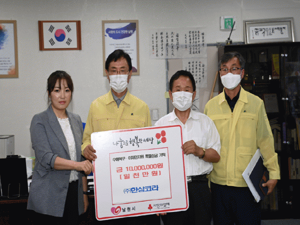 ¶ÇÇÑ ±Ýµ¿¿¡ À§Ä¡ÇÑ ¼º¸ðÀÇ¿ø(´ëÇ¥:ÀÌÀçÁø)°ú ³²¸í»ê¾÷°³¹ß¿¡¼ °¢°¢ ¼º±Ý ¿À¹é¸¸¿øÀ», ÀüºÏ°øÀÎȸ°è»çÇùȸ(ȸÀå:±ÇÈÖÀÏ)¿¡¼ ÀϹ鸸¿øÀ» ±âŹÇß´Ù. ±âŹµÈ ¼º±ÝÀº ÀçÇØ±¸È£ ¹°Ç° Áö¿ø°ú ¼öÇØÁö¿ª ÇÇÇØ º¹±¸¿¡ »ç¿ëµÉ ¿¹Á¤ÀÌ´Ù.
