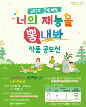 ÀÚ¼¼ÇÑ ÀÀ¸ð¹æ¹ýÀº ÀºÆò±¸ ȨÆäÀÌÁö ÆË¾÷Á¸ÀÇ ÀÚ¼¼È÷ º¸±â¸¦ Ŭ¸¯ÇÏ¸é ½ÅûÁ¢¼ö±¤Àå(³ÊÀÇ Àç´ÉÀ» »Ë³»ºÁ)À¸·Î ¿¬°èµÇ¾î È®ÀÎÇÒ ¼ö ÀÖ´Ù. »ó¼¼ ¾È³»¿Í À¯ÀÇ»çÇ×À» ÂüÁ¶ÇÏ¿© ÷ºÎµÈ Á¦Ãâ¼½ÄÀ» ÀÛ¼ºÇϰí ÀÛǰ»çÁø°ú ÇÔ²² À̸ÞÀÏ(ep2020children@ep.go.kr)·Î Á¦ÃâÇÏ¸é µÇ¸ç ±âŸ ÀÚ¼¼ÇÑ »çÇ×Àº ÀüÈ ¹®ÀÇ(02-351-6243)¸¦ ÅëÇØ È®ÀÎÇÒ ¼ö ÀÖ´Ù.