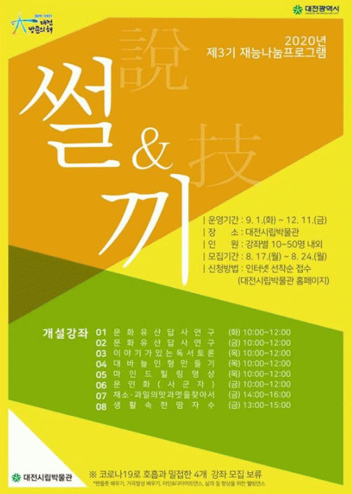 ¡®½ä&³¢¡¯´Â ½Ã¹ÎµéÀÇ ÀÚ¹ßÀûÀÎ Àç´É±âºÎ¸¦ ÅëÇØ ÀÌ·ïÁö´Â ¹«·á °Á·Î, ±âºÎ¹®È¸¦ Á¶¼ºÇϰí, Âü¿© ½Ã¹ÎÀº ¹Ú¹°°üÀ» ¹æ¹®ÇÔÀ¸·Î½á ÀÚ¿¬½º·´°Ô ´ëÀü¿ª»ç ÀǽÄÀ» ÇÔ¾ç½Ã۱â À§ÇØ ´ëÀü½Ã¸³¹Ú¹°°üÀÌ ÃßÁøÇÏ´Â ±³¾çÇÁ·Î±×·¥ÀÌ´Ù.