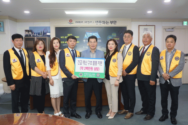 À̳¯ ºÎ¾ÈÁö¿ª ¼Ò¼Ó ºÎ¾È¶óÀ̿½ºÅ¬·´, ºÎ¾È¼ºÈ²¶óÀ̿½ºÅ¬·´, ºÎ¾È¼Û¹é¶óÀ̿½ºÅ¬·´, ³²ºÎ¾È¶óÀ̿½ºÅ¬·´ÀÇ È¸Àå ¹× È¸¿øÀÌ ±âŹ½Ä¿¡ Âü¼®ÇÏ¿´À¸¸ç, ±¸È£¹°Ç°À¸·Î ÄŶó¸é 32»óÀÚ, »ý¼ö 110»óÀÚ¸¦ Àü´ÞÇÏ¿´´Ù.