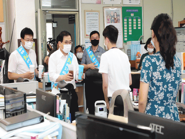 Ç㼺¹« ½ÃÀåÀº À̳¯ ¿ÀÈÄ ¡®Ä«Æä Çã¸Þ¸®Ä«³ë, ¼ÇÁ¶óÀÌÁî Ä¿ÇÇīƮ¡¯¸¦ ÁÖÁ¦·Î ½Ã û»ç¿¡ ÀÖ´Â 8°³ ºÎ¼¸¦ ¹æ¹®ÇßÀ¸¸ç, Áï¼®¿¡¼ ¾ÆÀ̽º ¾Æ¸Þ¸®Ä«³ë¸¦ ¸¸µé¾î Á÷¿øµé¿¡°Ô °Ç³×¸ç °Ý·ÁÀÇ ¸»À» ÀüÇß´Ù.