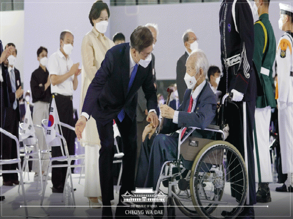 ƯÈ÷, À̳¯Àº Åë»ó ÁøÇàµÇ´Â ±¹°¡ ±â³ä½Ä ÀÇÀü°ú ´Þ¸® ÀÓ¿ìö, ±è¿µ°ü, ÀÌ¿µ¼ö, À庴ÇÏ µî ³× ºÐÀÇ ¾Ö±¹Áö»ç ´ëÇ¥°¡ ÁÖºóÀÌ µÉ ¼ö ÀÖµµ·Ï ÀÇÀå´ëÀÇ È£À§¸¦ ¹ÞÀ¸¸ç ÀÔÀåÇß´Ù. ¹®ÀçÀÎ ´ëÅë·ÉÀº ¾Ö±¹Áö»ç ÇÑ ºÐ ÇÑ ºÐ²² Á¸°æ°ú °¨»çÀÇ Àλ縦 µå¸®¸ç ¸ÂÀÌÇÔÀ¸·Î½á ¾Ö±¹Áö»çµéÀÇ ¼þ°íÇÑ Èñ»ýÁ¤½ÅÀ» ±â¸®°í »çȸÀû ¿¹¿ì¸¦ °ÈÇϰíÀÚ ÇÏ´Â ´ëÅë·É°ú Á¤ºÎÀÇ ¶æÀ» ³ªÅ¸³Â´Ù.