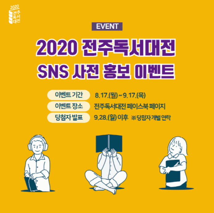 ½Ã´Â ¿À´Â 9¿ù 17ÀϱîÁö ÇÑ ´Þ °£ 2020 ÀüÁÖµ¶¼´ëÀü ÆäÀ̽ººÏ ÆäÀÌÁö(www.facebook.com/JJBOOK.KR)¿¡¼ SNS »çÀü È«º¸ À̺¥Æ®¸¦ ¿î¿µÇÑ´Ù°í 18ÀÏ ¹àÇû´Ù. ¿ÃÇØ ÀüÁÖµ¶¼´ëÀüÀº ¿À´Â 9¿ù 18ÀϺÎÅÍ 20ÀϱîÁö 3Àϰ£ ±¹¸³¹«ÇüÀ¯»ê¿ø ÀÏ¿ø¿¡¼ ¡®´Ùµ¶´Ùµ¶, ´ç½ÅÀ» µè°Ú½À´Ï´Ù¡¯¸¦ ÁÖÁ¦·Î ¿Â¡¤¿ÀÇÁ¶óÀÎÀ¸·Î º´Çà °³ÃֵȴÙ.
