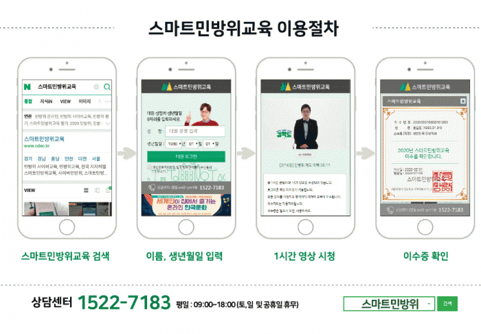 ±³À°°úÁ¤ÀÌ ¸ðµÎ ºñ´ë¸é ¿Â¶óÀÎ ¹æ½ÄÀ¸·Î ´ëüµÊ¿¡ µû¶ó, ±³À°´ë»óÀÚ¿¡ ÇØ´çÇÏ´Â »ç¶÷Àº ´ÙÀ½´Þ 1ÀϺÎÅÍ 11¿ù 30ÀÏ »çÀÌ¿¡ PC³ª ½º¸¶Æ®ÆùÀ¸·Î ¡®½º¸¶Æ® ¹Î¹æÀ§±³À°¡¯ »çÀÌÆ®(www.cdec.kr)¿¡ Á¢¼ÓÇØ ¾à 1½Ã°£ °úÁ¤ÀÇ ±³À°À» ¼ö°ÇØ¾ß ÇÑ´Ù. µ¿¿µ»ó ½Ãû ÈÄ ¹Î¹æÀ§ »ýȰ¾ÈÀü »ó½Ä °´°ü½Ä Æò°¡ 20¹®Ç× Áß 14¹®Ç× ÀÌ»ó ¸ÂÃß¸é ±³À°À» À̼öÇÑ °ÍÀ¸·Î ÀÎÁ¤µÈ´Ù. ±¸´Â »çÀ̹ö±³À° Âü¿©°¡ ¾î·Á¿î ¹Î¹æÀ§´ë¿ø¿¡ ´ëÇØ¼´Â ¼¸é±³À°À» ÅëÇØ ±³À°±âȸ¸¦ Á¦°øÇÒ ¹æÄ§ÀÌ´Ù. ÀÌ °æ¿ì µ¿ ÇàÁ¤º¹Áö¼¾ÅÍ¿¡¼ ±³À縦 ¼ö·ÉÇÏ¿© 30ÀÏ À̳»¿¡ °úÁ¦¹°À» ÀÛ¼ºÇÏ¿© Á¦ÃâÇÏ¸é µÈ´Ù.