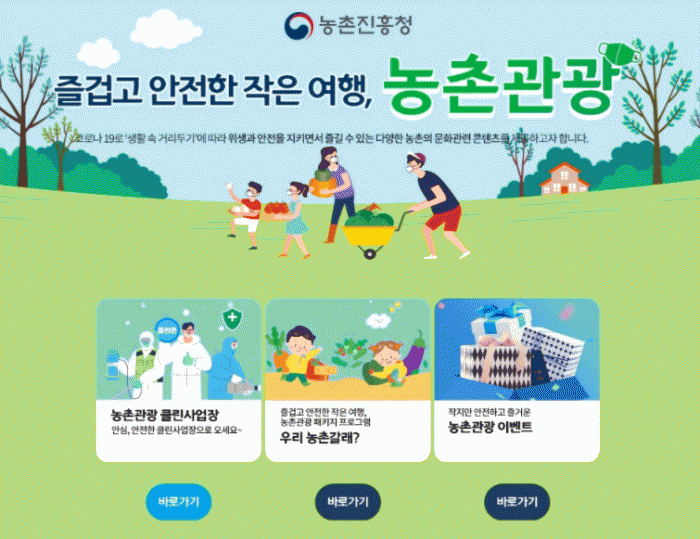 ÀÌ¿Í °ü·Ã ³óÃÌÁøÈïûÀº °ø½Ä »çȸ°ü°è¸Á(SNS)À» ÅëÇØ Àü ±¹¹Î Âü¿© ³óÃÌ¿©Çà ÀÌ¿ëÈıâ À̺¥Æ®¸¦ ¸¶·ÃÇϰí, ³óÃ̰ü±¤ Ŭ¸°»ç¾÷ÀåÀ» ÀÌ¿ëÇÒ ¼ö ÀÖ´Â ¿Â¶óÀÎ »óǰ±ÇÀ» °³¹ßÇØ ³óÃÌ¿©Çà Ȱ¼ºÈ¸¦ µµ¸ðÇϰí ÀÖ´Ù.