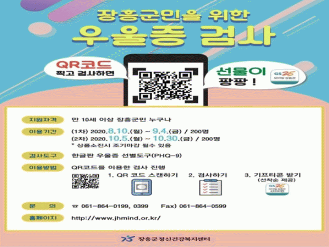 ¸¸ 10¼¼ ÀÌ»ó ÀåÈﱺ¹Î ´©±¸³ª Âü¿©°¡ °¡´ÉÇϸç, 8¿ùºÎÅÍ 10¿ù±îÁö 2Â÷¿¡ °ÉÃÄ ÇÑ±ÛÆÇ ¿ì¿ïÁõ ¼±º°µµ±¸(PHQ-9)¸¦ Ȱ¿ëÇÑ Ä·ÆäÀÎÀ» ÁøÇàÇÑ´Ù.